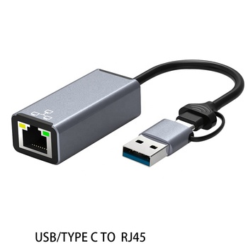 2 in 1 Type C / USB to 1000Mbps Gigabit RJ45 Ethernet Adapter Aluminum Alloy Network Card for Phone Laptop